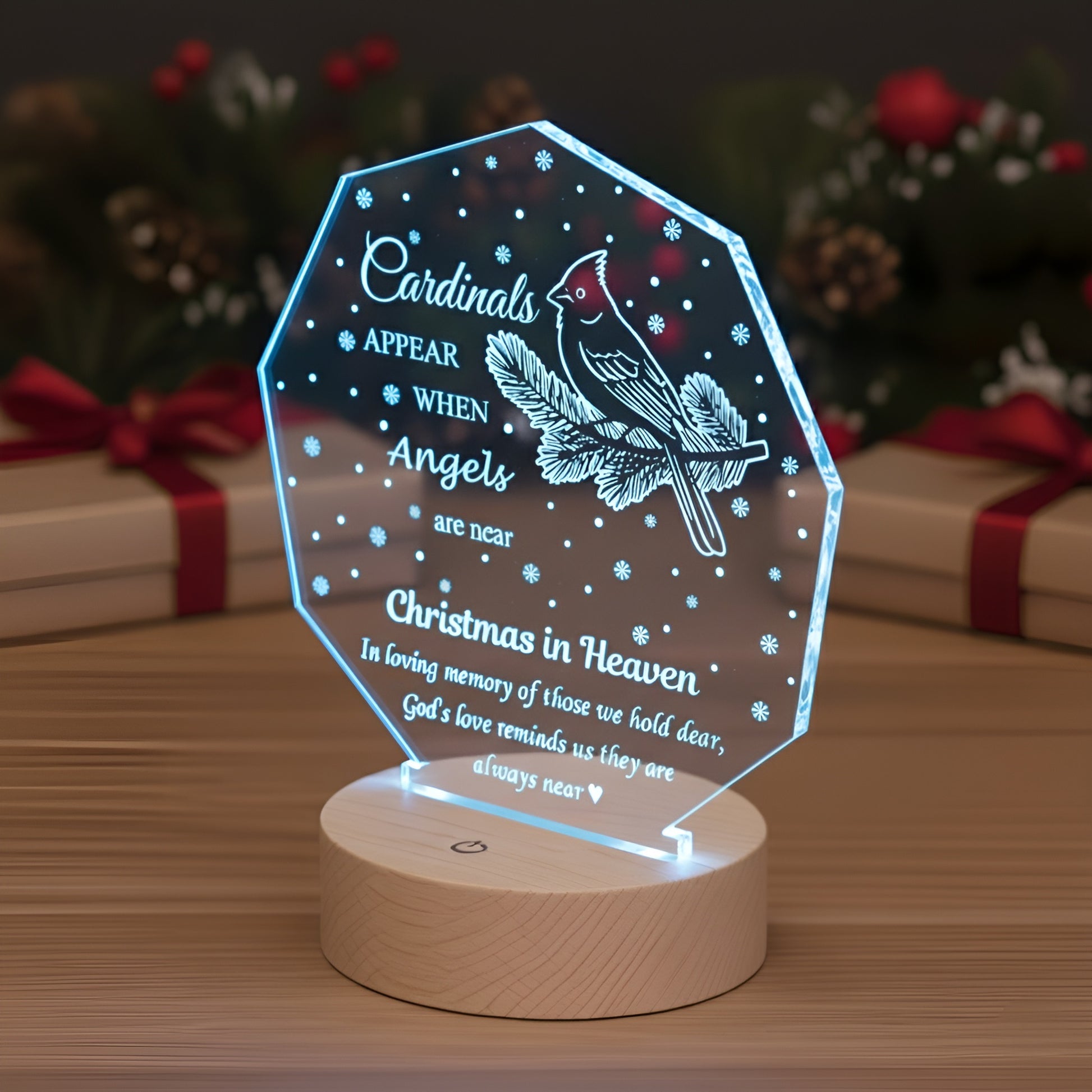 It can be customized with a name, date, or specific message for a deeply personal tribute. It is a peaceful, glowing keepsake to honor the memory of a loved one. A heartfelt gift of solace and remembrance.